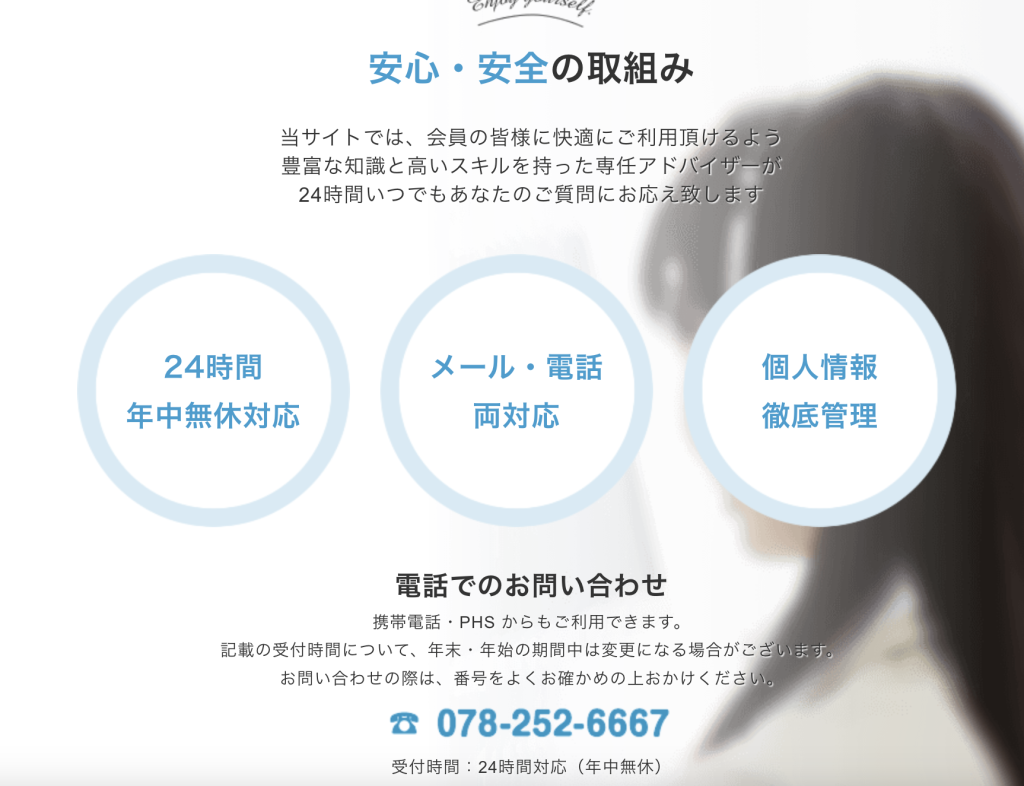 出会い系サイトはその不安がつきものですが、下記の通り、24時間対応だったりとかなり安全なサイトといえます。