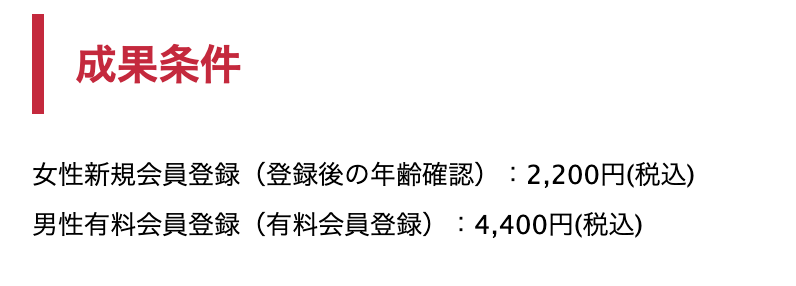 ・単価が高い(女性新規会員登録(登録後の年齢確認):2,200円(税込)