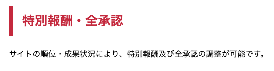 ※サイトの順位や成果状況により、特別報酬・全承認の調整が可能です。