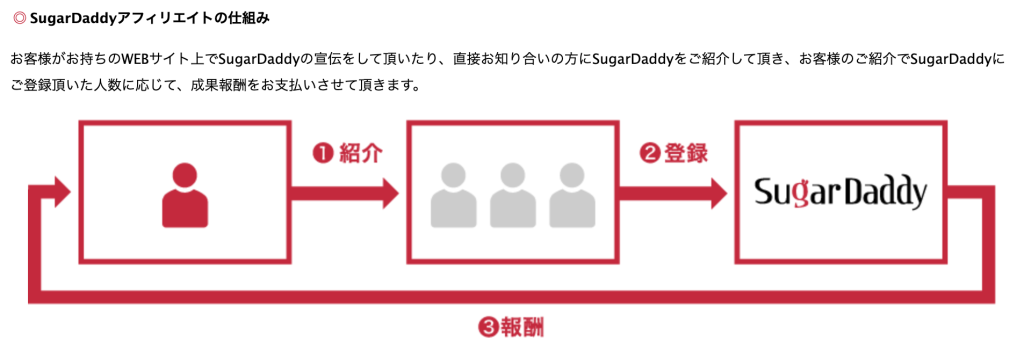 2022年6月現在、シュガーダディ(SugarDaddy)のアフィリエイトは直提携かafbで可能です。