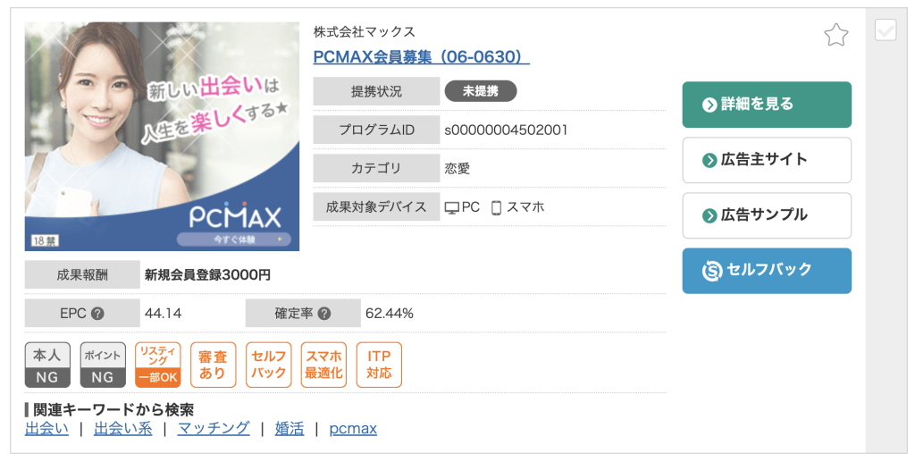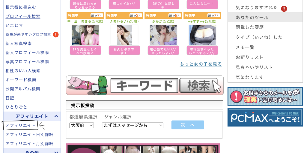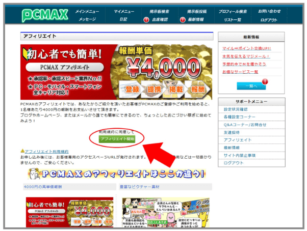 PCMAXアフィリエイトの内容